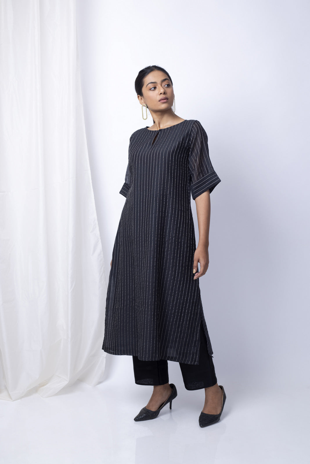 - Minimalist black and silver striped chanderi tunic co-ord set