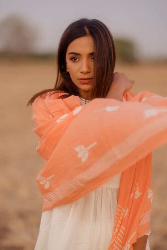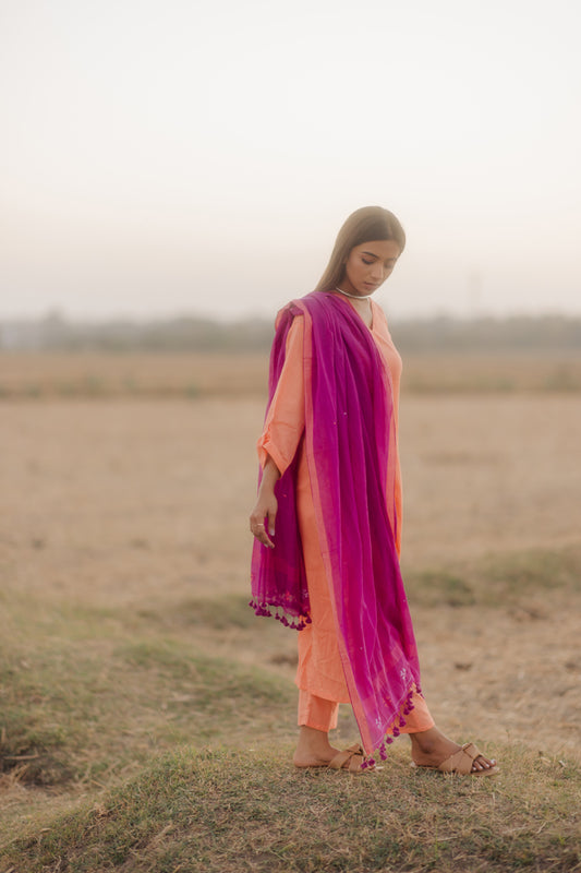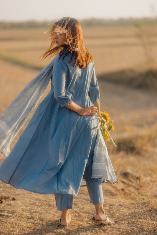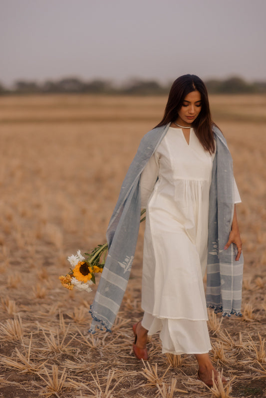 Crisp white kurta set with Ash grey jaamdani Dupatta
