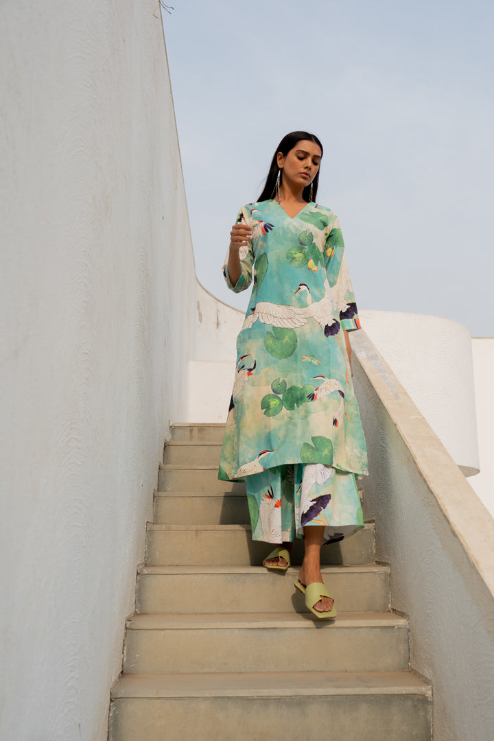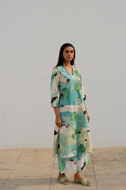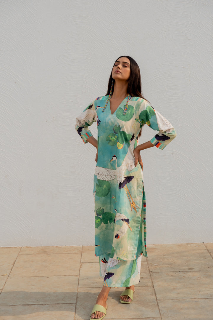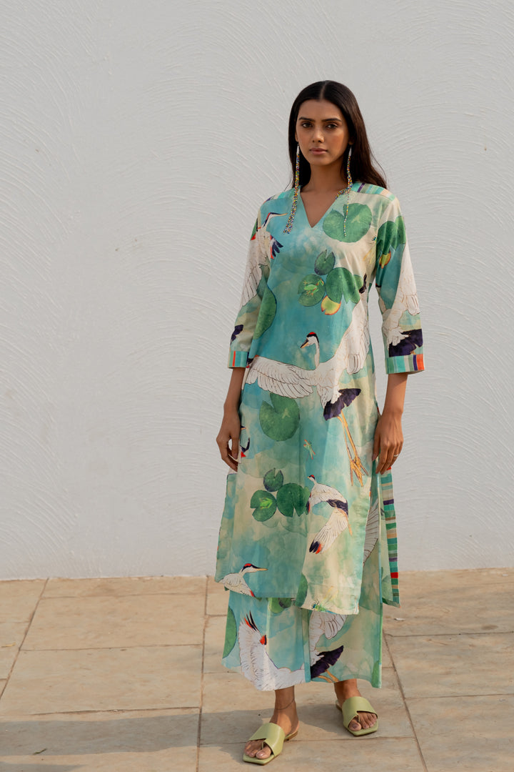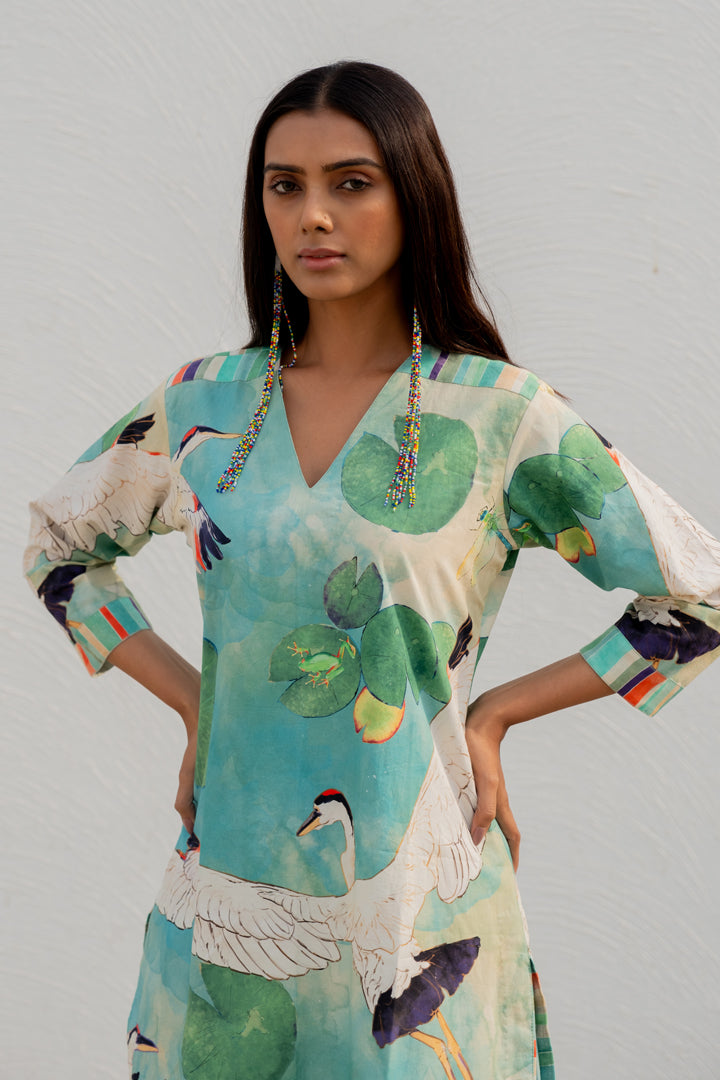 Get the best of comfort and style with our A-line Printed Kurta. It comes with handy pockets. The striped details on the shoulder and sleeve take it a notch higher.