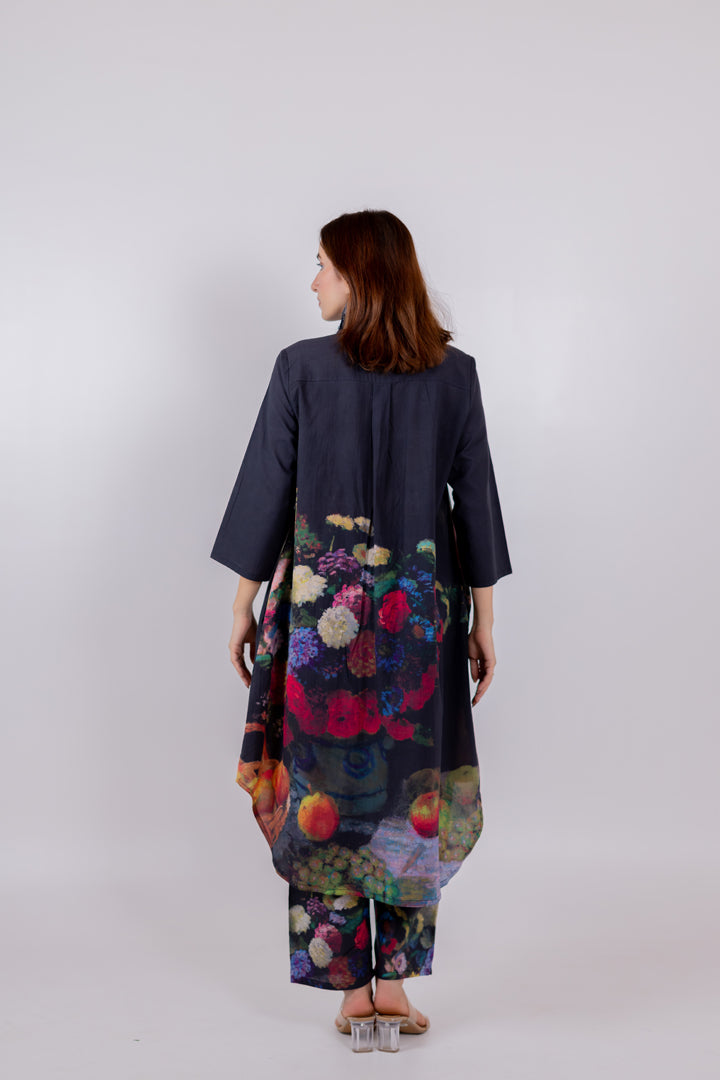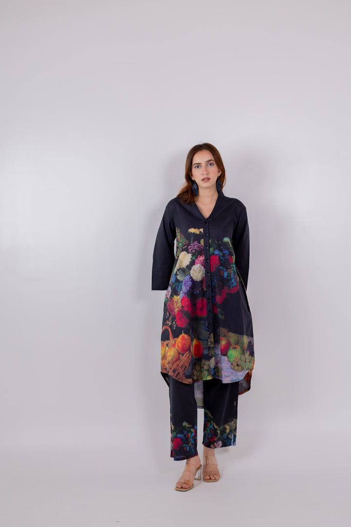 Black Blooms Tunic Set
