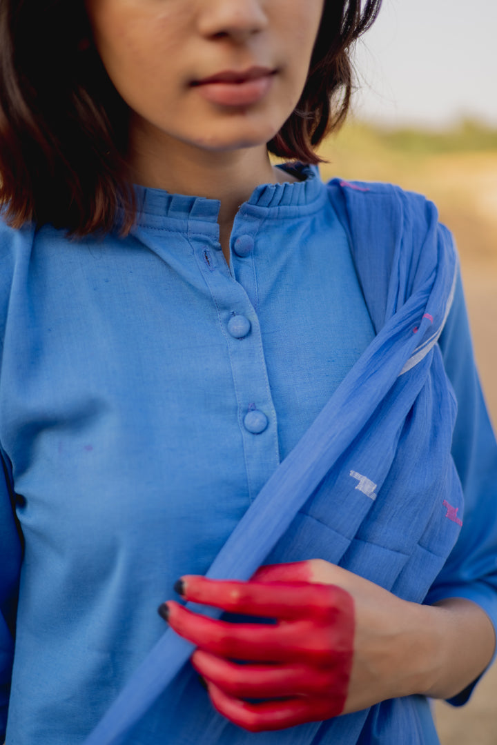 Blue Kurta with Clinched pants