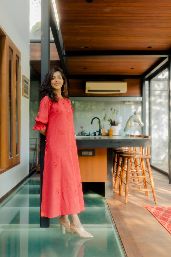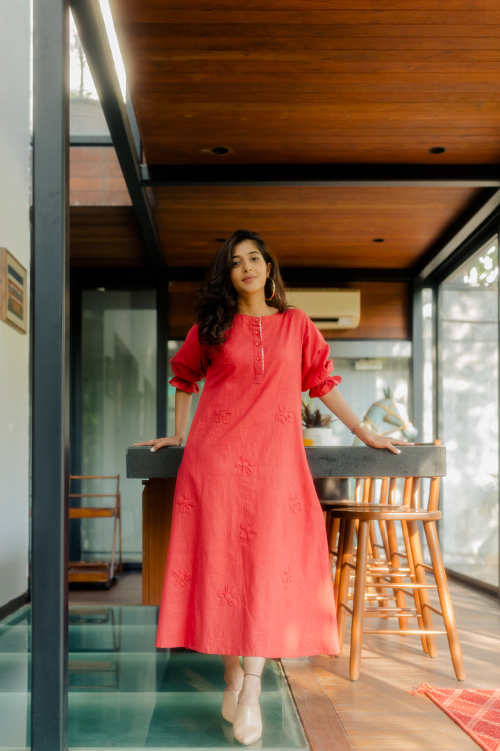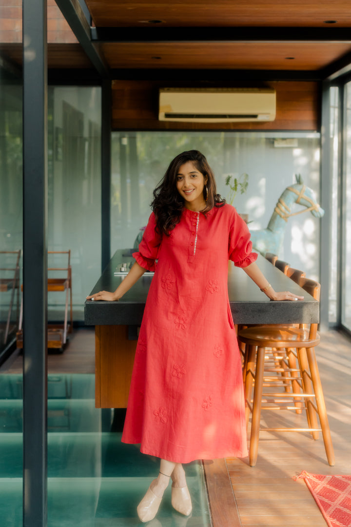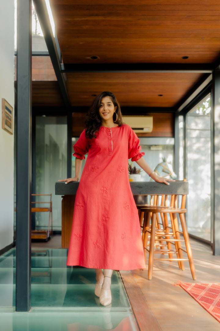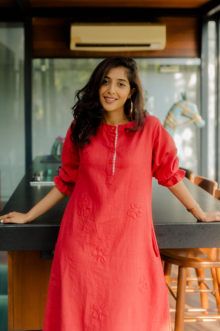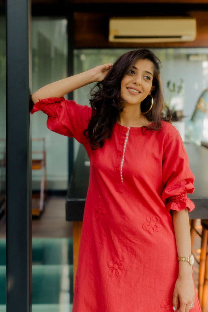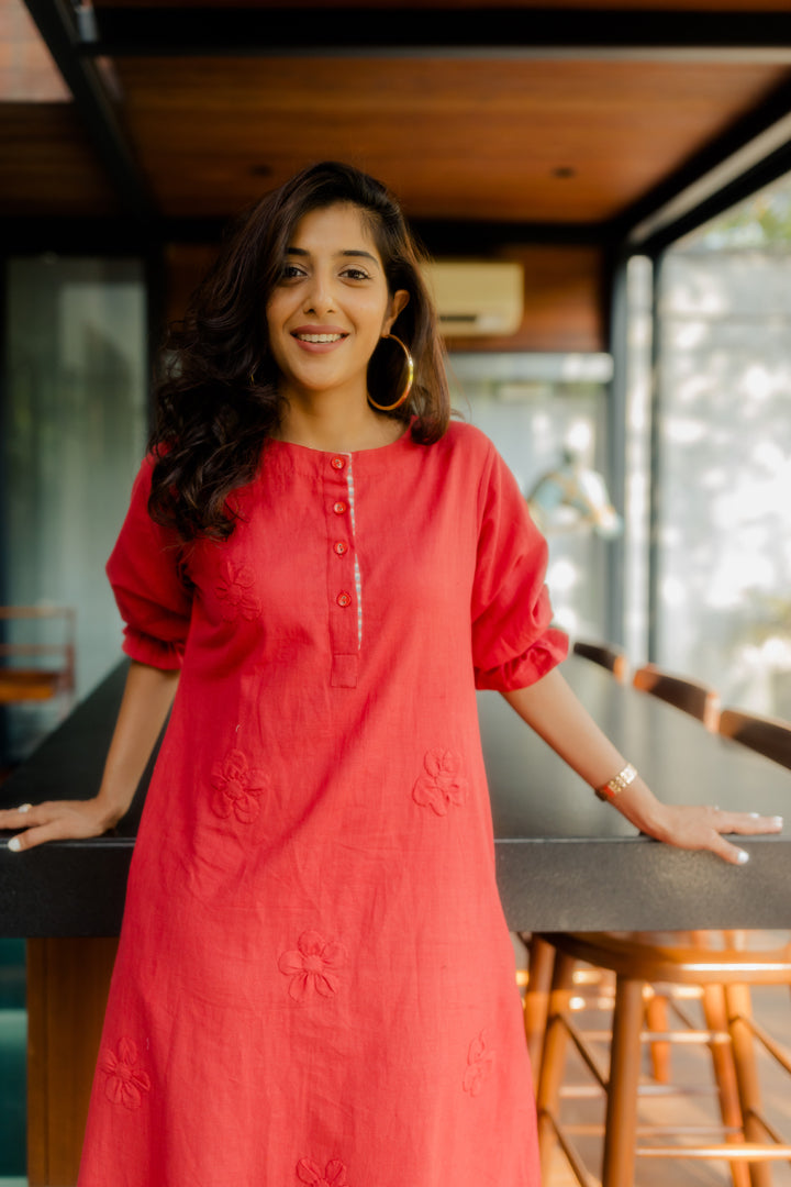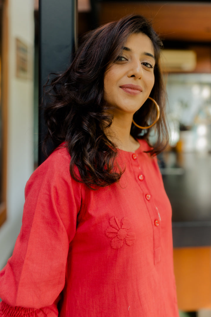 Red A-line tunic with 3D applique