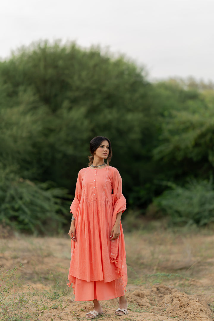 Peach Rose Mulmul Kurta Set
