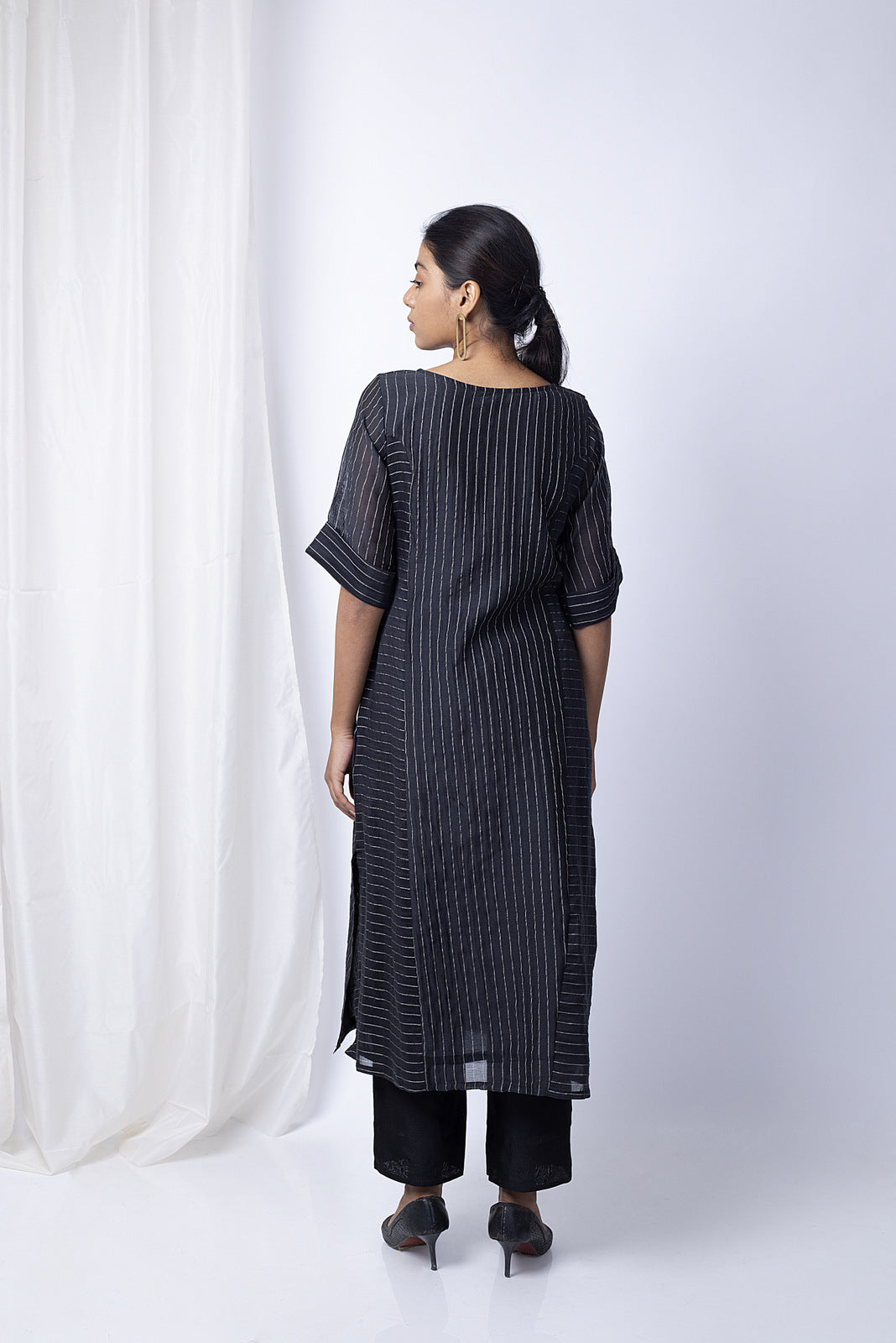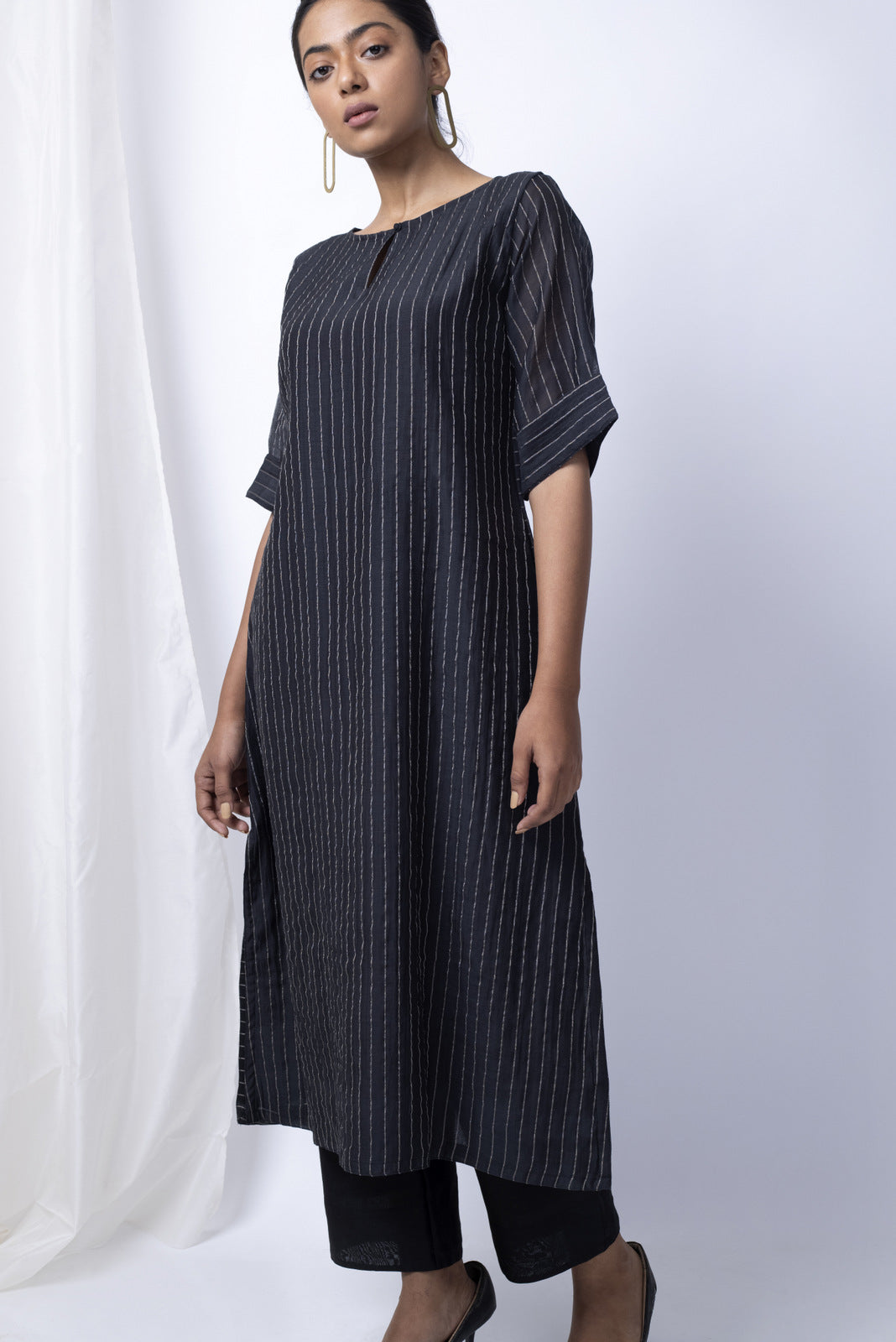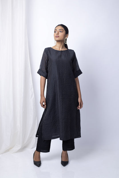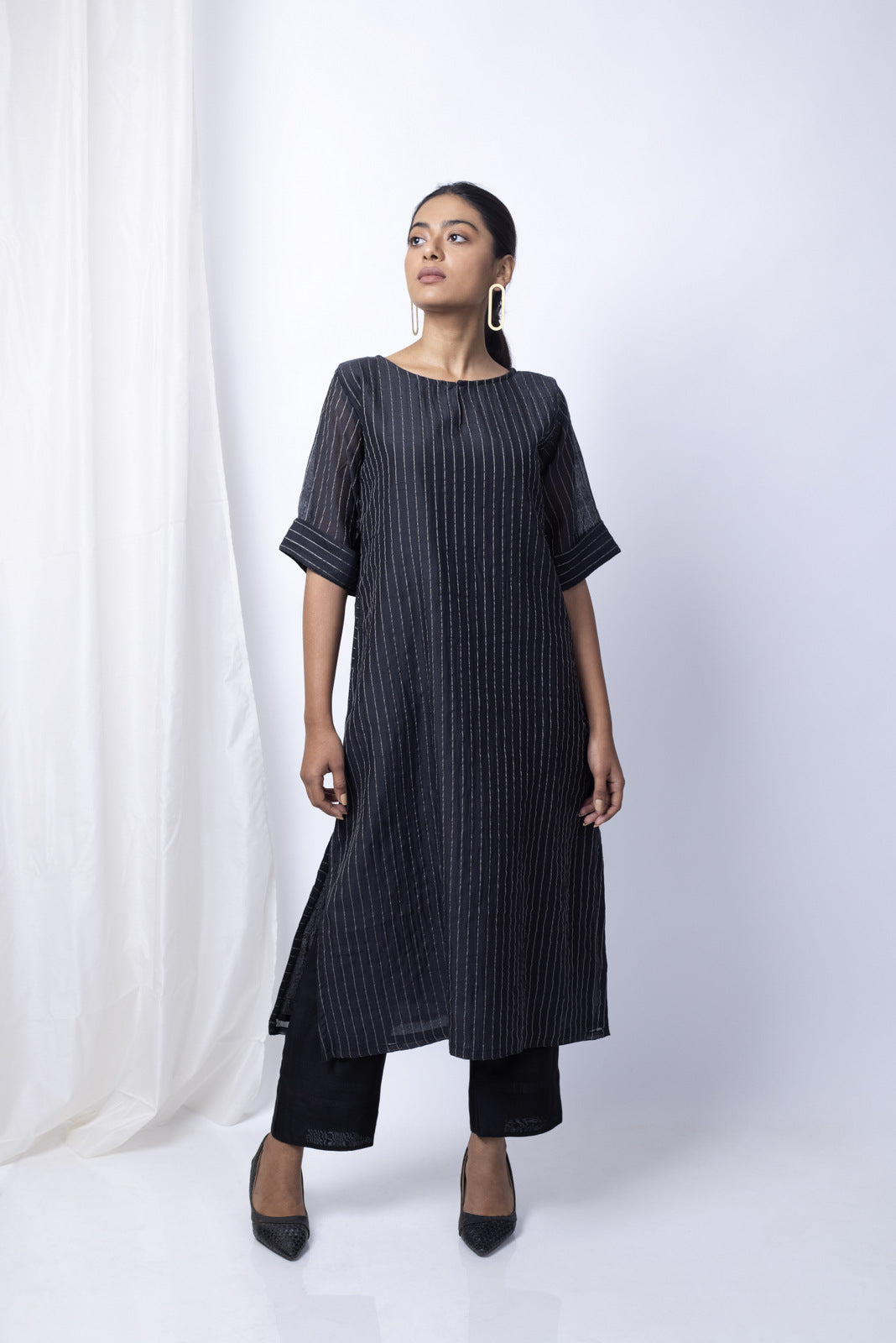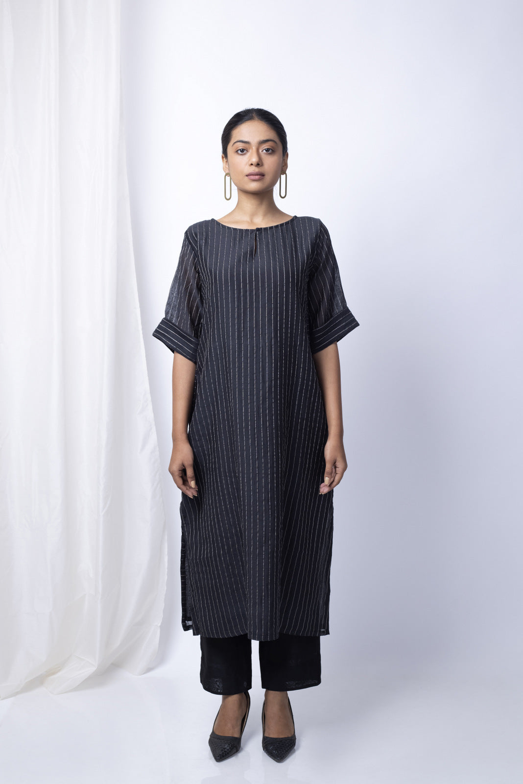 - Minimalist black and silver striped chanderi tunic co-ord set