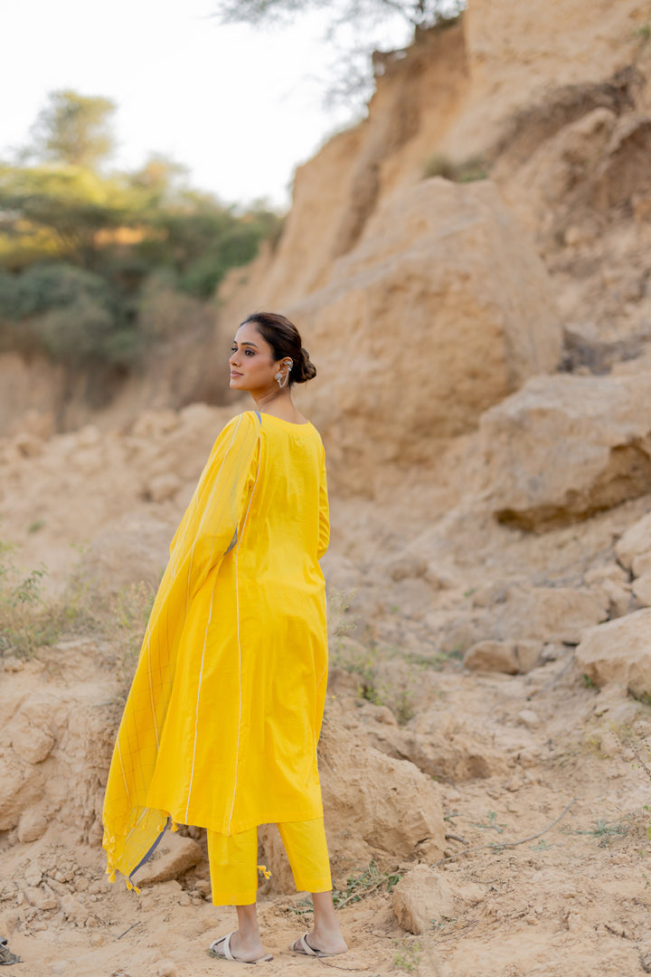 Yellow Cotton Kurta Set