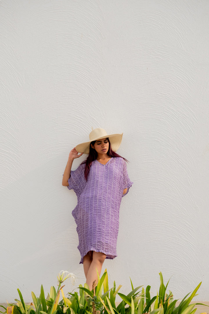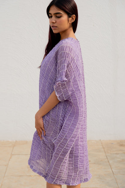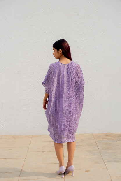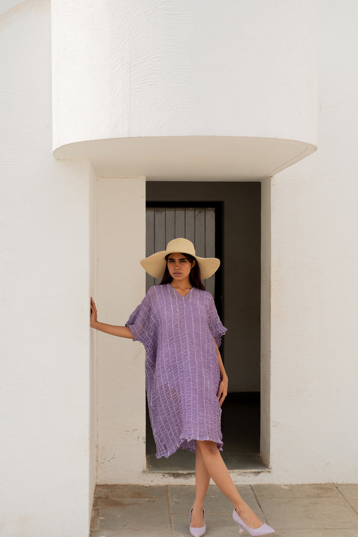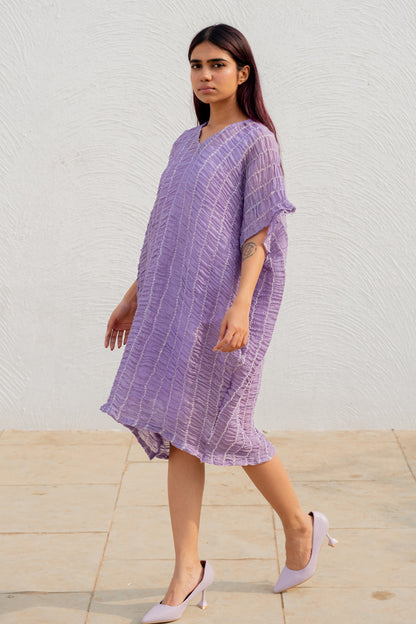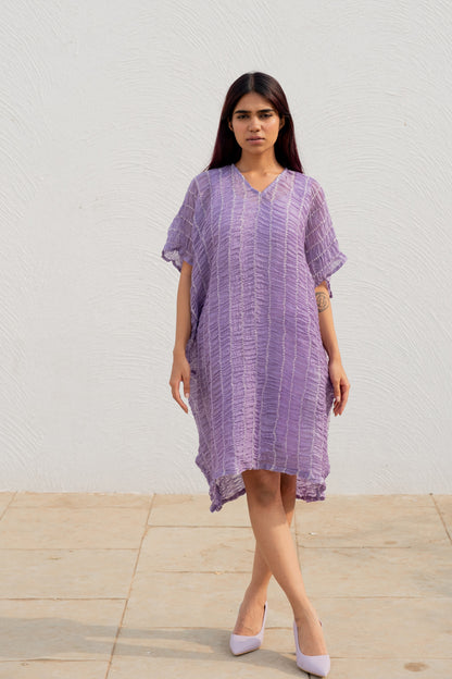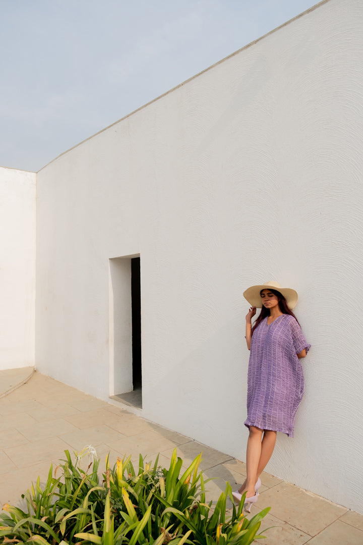 Our Thistle white cocoon dress is crafted in authentic hand-tied bandhej. It comes complete with a slip in cotton mulmul fabric.
