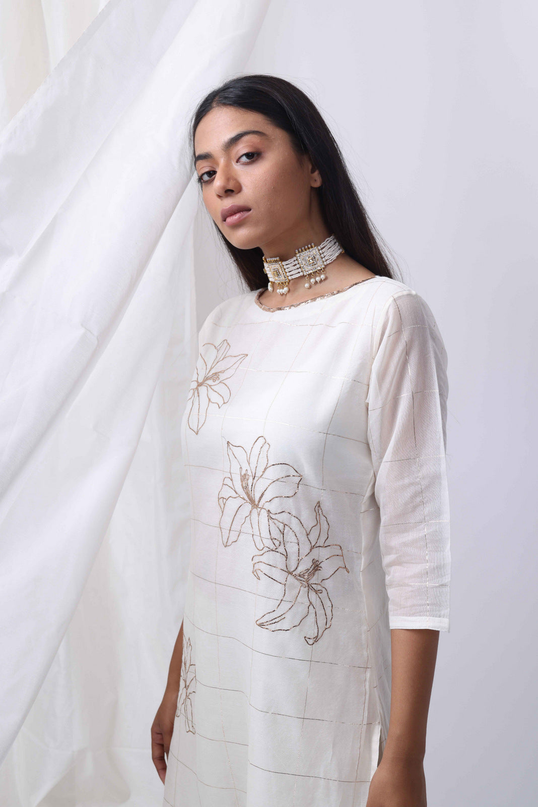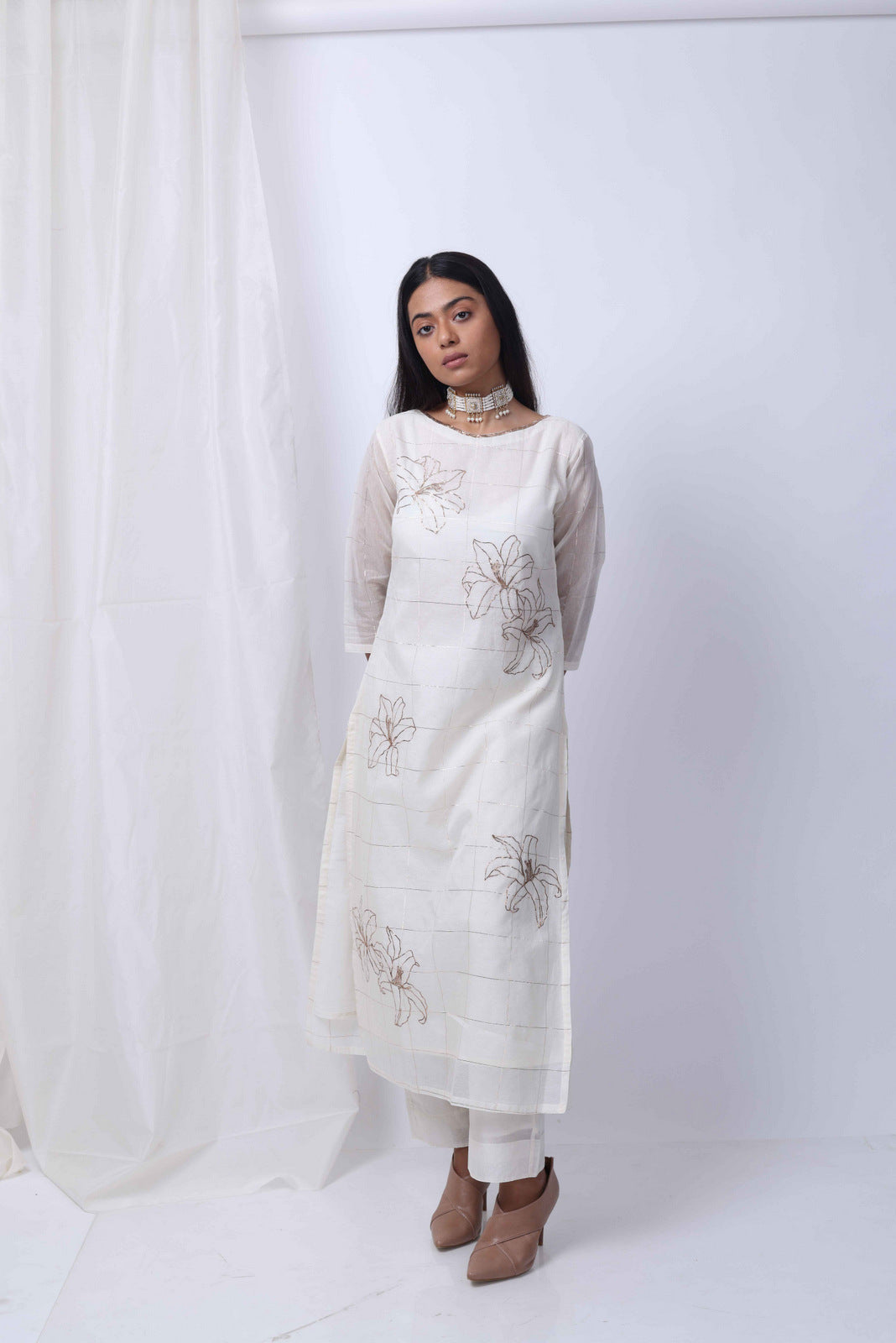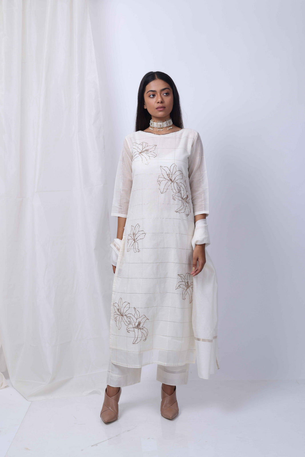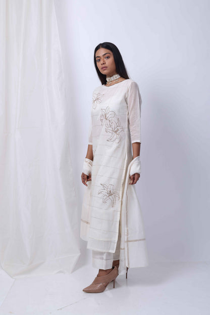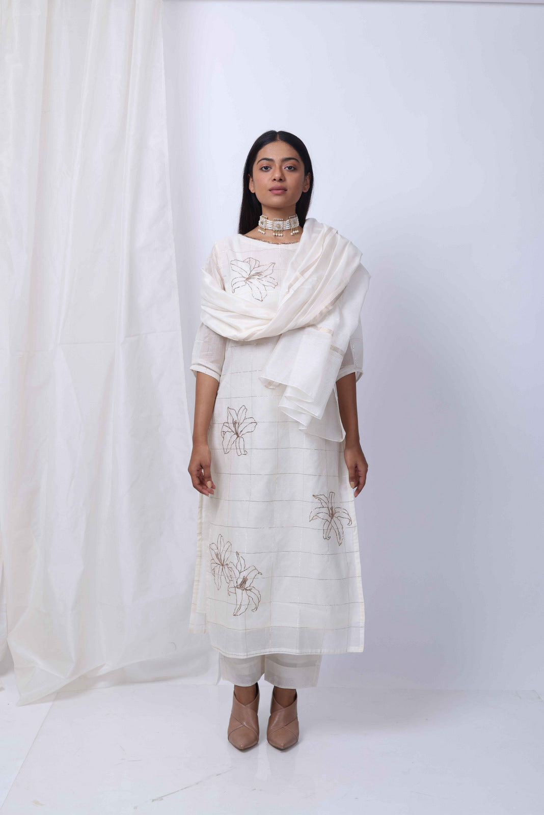 -comes with co-ordinated white chanderi pants and white chanderi dupatta