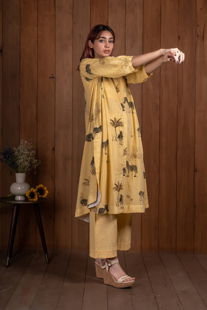 Yellow Hand printed tunic - set of 2